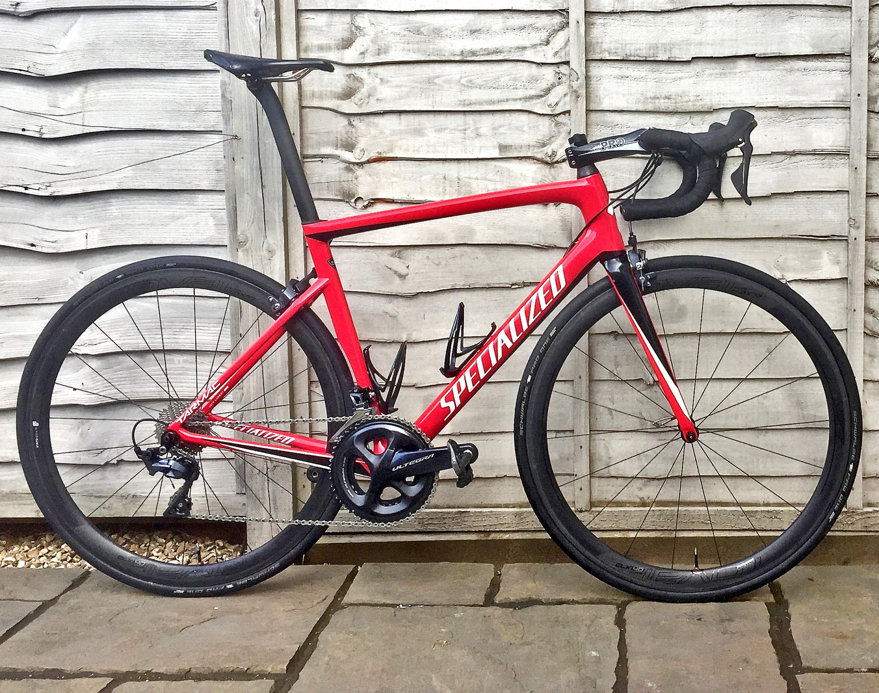 My current team bike is the new Specialized Tarmac SL6, with mechanical Ultegra, with Schwalbe providing us with PRO ONE tubeless tires. I run it with semi classic style drop bars, and a pro vibe sprint stem. I ride a 56cm frame, which is supposedly a size too small, but allows me to get into a lower, more aggressive position which I prefer.